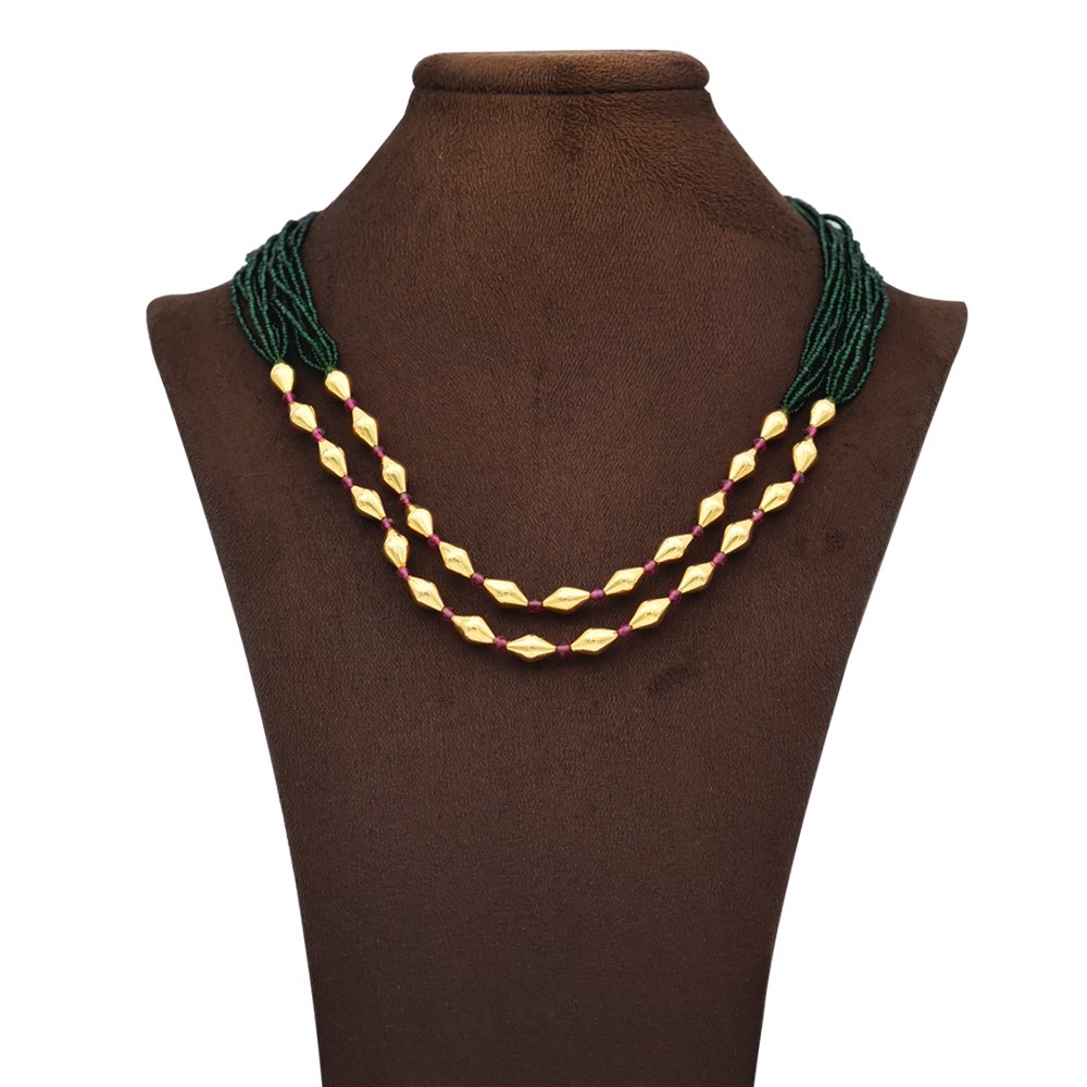 Regal Necklace with Green Beads & Red Stones in 22kt Gold
