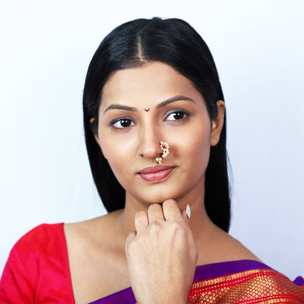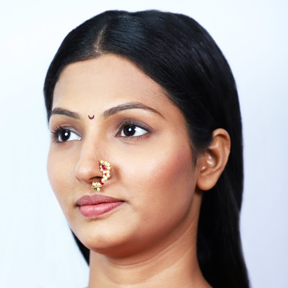 Traditional Brahmani RedStone Nath in Pearls & 22kt Gold