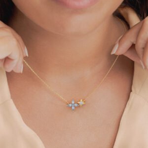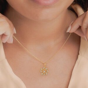 PRODUCT INFORMATION Weight Gross : 0.860 g – 18KT / 0.75 g – 14KT Purity 18KT,14KT Note Handcrafted jewellery. Actual gold and gemstone weights may vary by +/- 5% . Note : Chain is not included DIAMONDS & GEMSTONES Gemstone Details Diamond 0.23 ct , 5 pcs